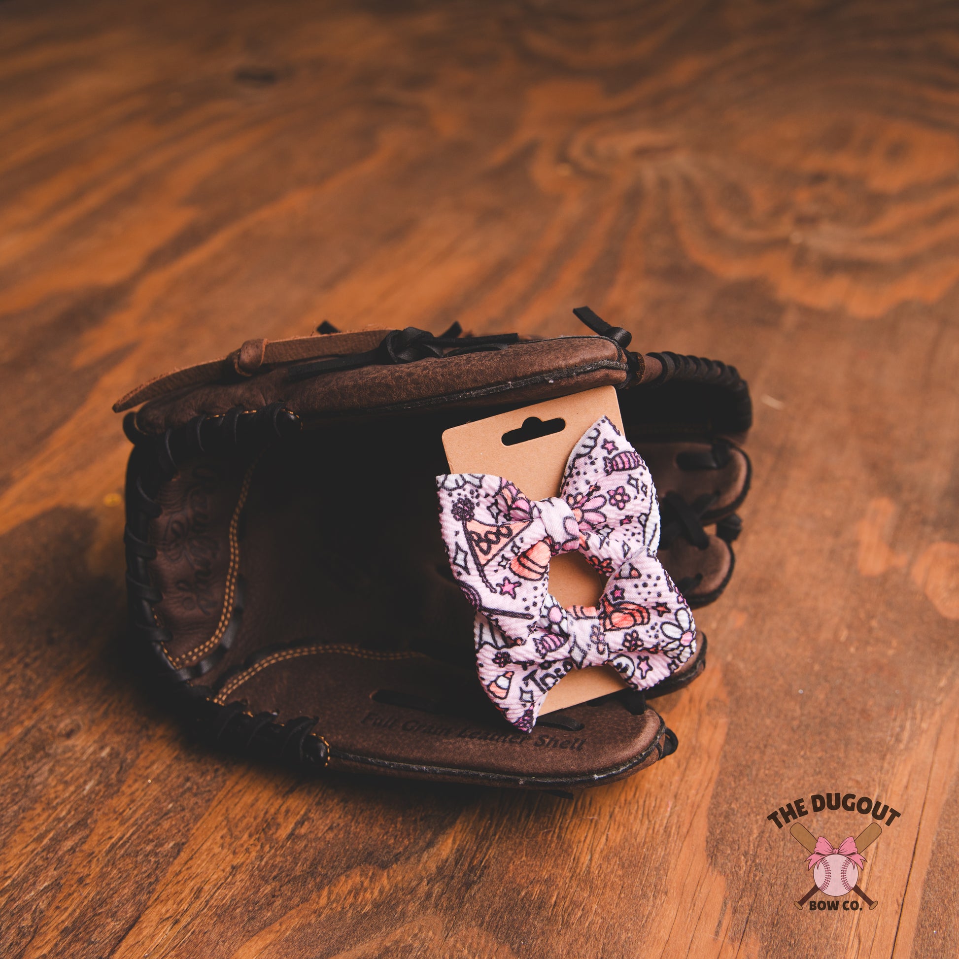 all treats, no tricks — featuring a soft pink base with fun Halloween icons like candy, bats, ghosts, and pumpkins. It’s the perfect blend of girly and ghoulish for your little boo or your favorite bleacher babe.